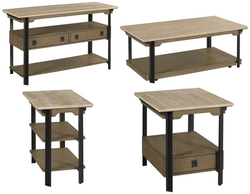 Set includes cocktail table, end table, chairside table and sofa table