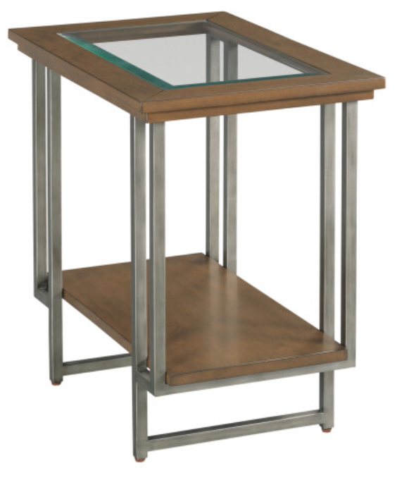 Put your style on display with the Ingrid collection from Hammary. Alder veneer tops in a Bronze finish with inset beveled tempered glass, and metal legs in a Dusty Silver finish that cantilever to the front and back sides of the tables to create a contemporary floating silhouette.Read More