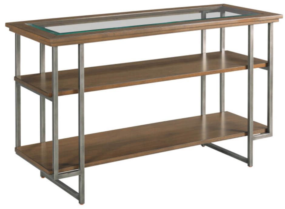 Put your style on display with the Ingrid collection from Hammary. Alder veneer tops in a Bronze finish with inset beveled tempered glass, and metal legs in a Dusty Silver finish that cantilever to the front and back sides of the tables to create a contemporary floating silhouette.Read More