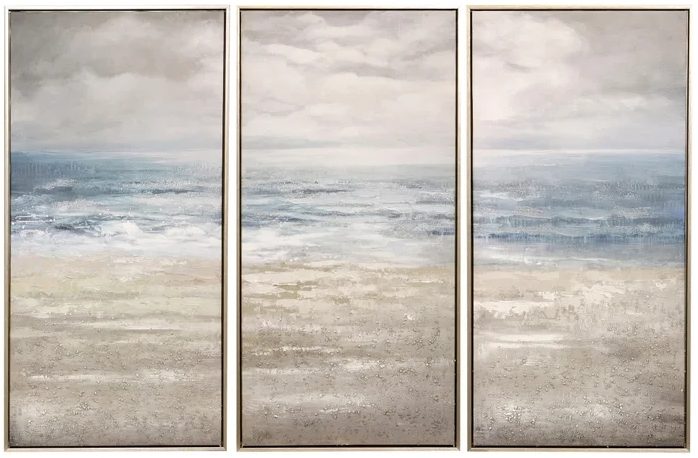 The Natural Views wall art features a vibrant, colorful depiction of a blue lake split across three separate canvases, creating a panoramic and dynamic effect. Hand-painted on framed canvas, the artwork adds texture and depth, while the gold frame unifies the set with warmth and refined elegance.Read More
