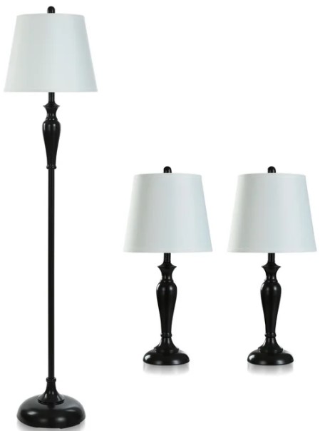 Set includes two table lamps and one floor lamp