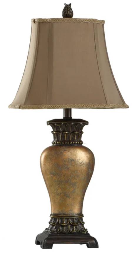 Complete your living room design with this table lamp from Stylecraft. Shown in dark brown and bronze base and brown shade finish. Make a bold statement by incorporating this stunning table lamp into your home.Read More